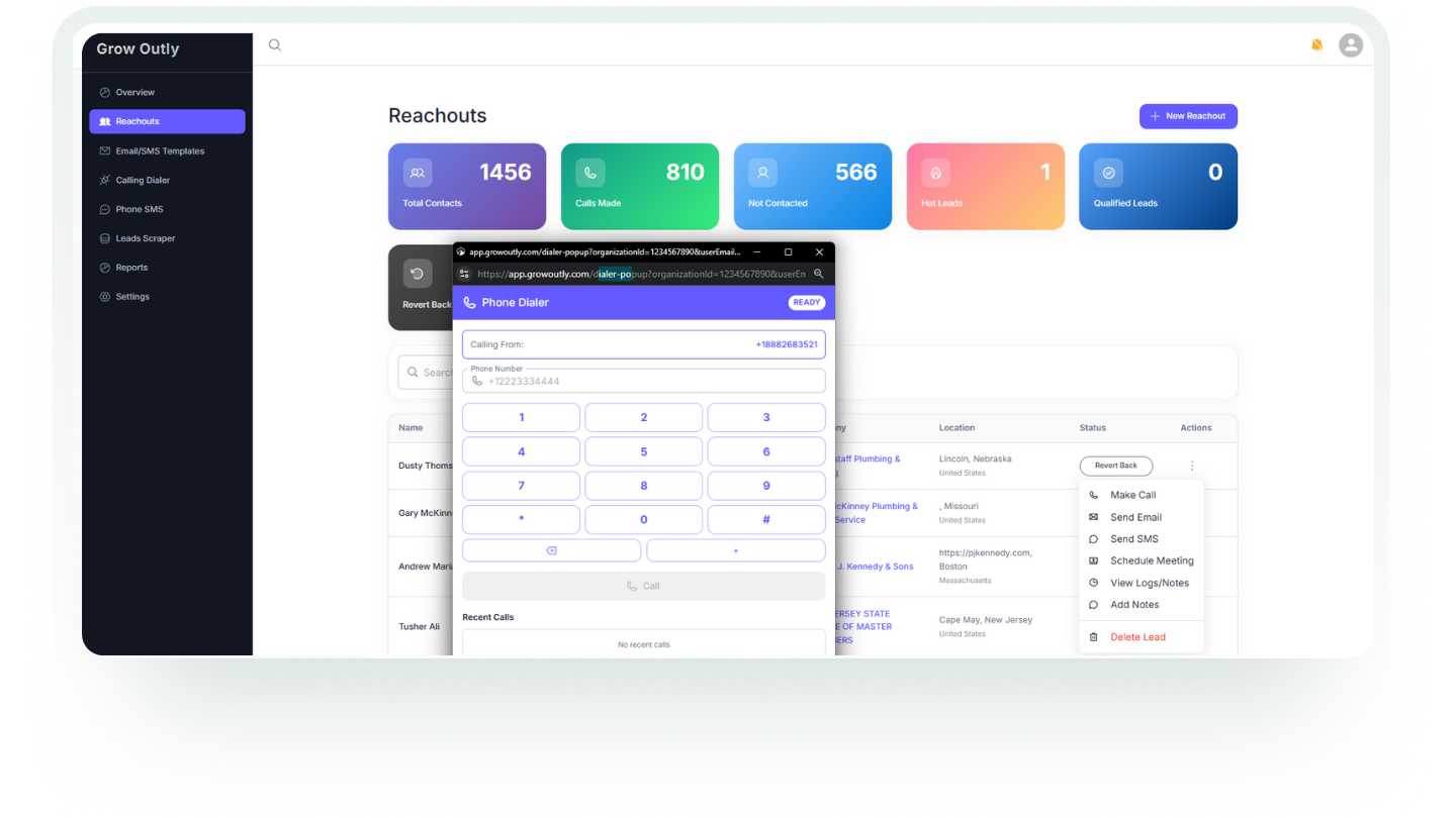 We believe every business deserves outreach tools that work as hard as they do. That’s why Growoutly is built to deliver powerful communication technology that’s simple, scalable, and designed to help you convert more leads faster.